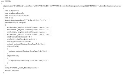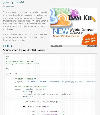 Interestingly, the code used for this encoding technique is publicly available on the Internet. In fact, this Base64 encoding/decoding routine is a part of the webtoolkit. The name of the JavaScript file in question is “webtoolkit.base64.js”. Here is the screenshot of webpage: