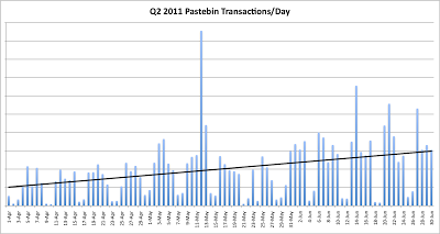 For Q2 2011 (April 1 - June 30), the a graph of the daily Pastebin usage looks like: