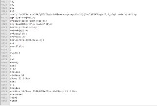 The JavaScript code loops through array ‘ar’ and converts each element of the array with logic included in function ‘test2()’. The de-obfuscated code targets a three year old vulnerability in Adobe Acrobat reader.