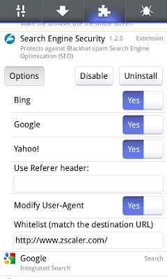 Zscaler has released 3 Firefox add-ons to protect users, such as Search Engine Security, BlackSheep and Zscaler Safe Shopping. I have now ported Search Engine Security to the mobile version of Firefox 4, and will release Zscaler Safe Shopping for mobile devices later on.