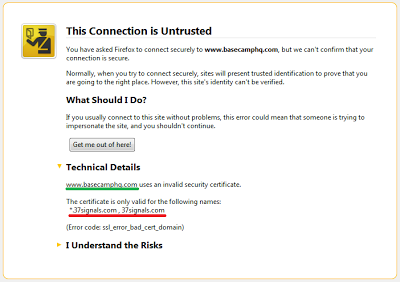 If you go to https://www.basecamphq.com/, you get a certificate for 37signals.com.  This isnt very helpful for users not aware that BaseCamp is a product from the company 37Signals.
