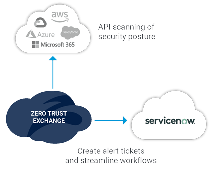 With Zscaler SaaS Security Posture Management (SSPM), you can scan your public clouds for dangerous misconfigurations. You can also remediate incidents instantly or create alert tickets in ServiceNow as artifacts for streamlined workflows.