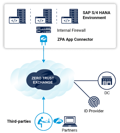 Following a unique inside-out connectivity model, native deployed ZPA app connectors dynamically broker secure connections directly between users and specific SAP applications.