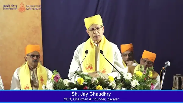 Jay Chaudhry, BHU alumnus and Founder, CEO, and Chairman of Zscaler, was the Chief Guest at the 104th Convocation of Banaras Hindu University. Watch his address to hear his inspiring journey from a humble farming background to becoming a global tech leader, urging students to make an impact rather than chase wealth.
