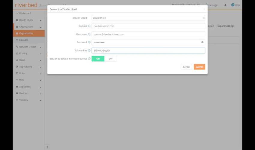 Zscaler and Riverbed SteelConnect One-Click Integration